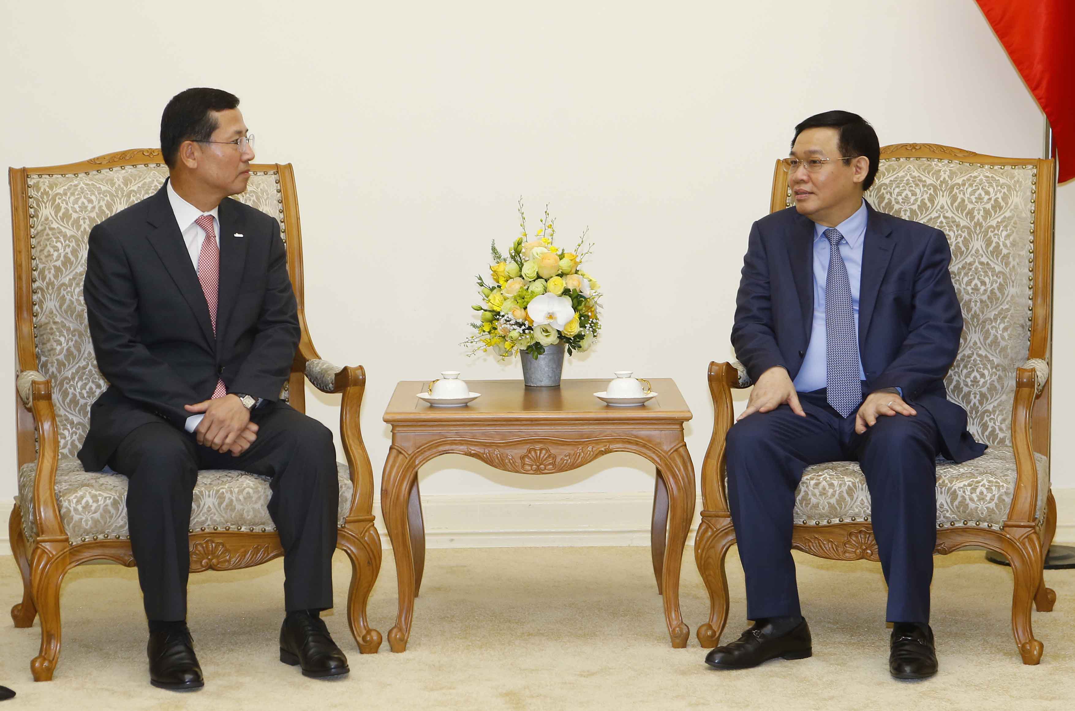 Phó Thủ tướng Vương Đình Huệ và Chủ tịch, Tổng Giám đốc Công ty thẻ Shinhan Lim Young Jin - Ảnh: VGP/Thành Chung