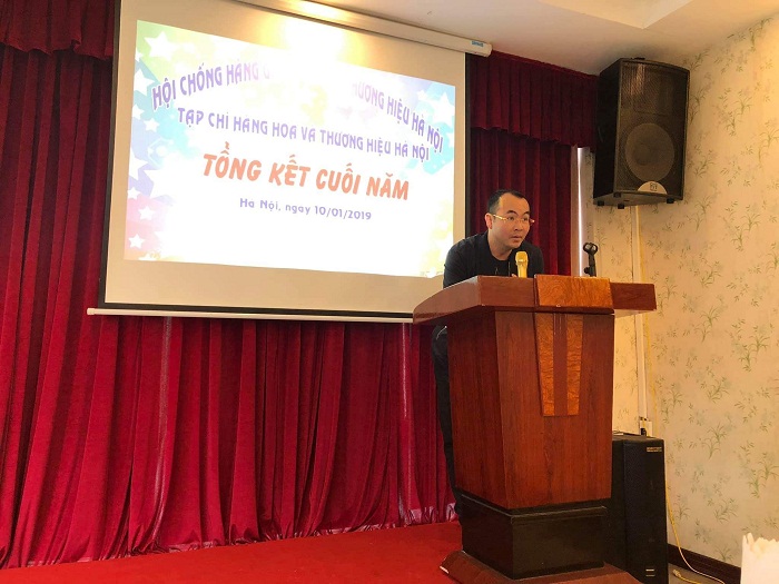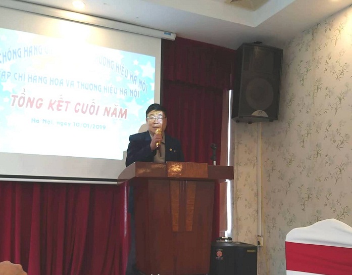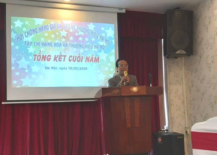 Ông Phạm Bá Dục –Phó chủ tịch Hội Chống hàng giả và Bảo vệ thương hiệu, Tổng biên tập Tạp chí Hàng hóa & Thương hiệu HN phát biểu tại buổi lễ.