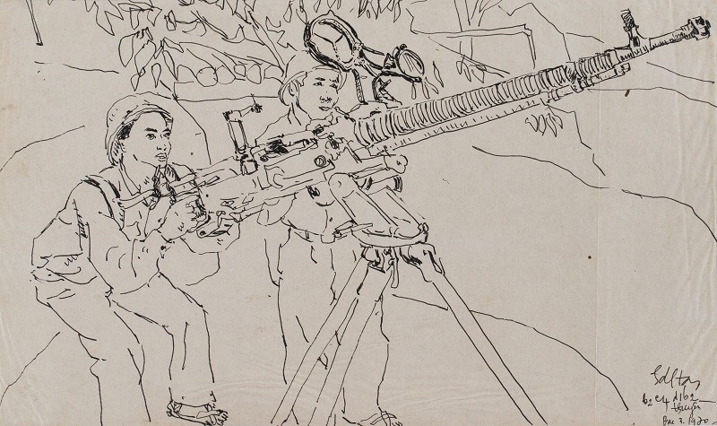 Triển lãm có nhiều bức ký họa được vẽ ở chính chiến trường Trường Sơn. (Nguồn: Lao Động)