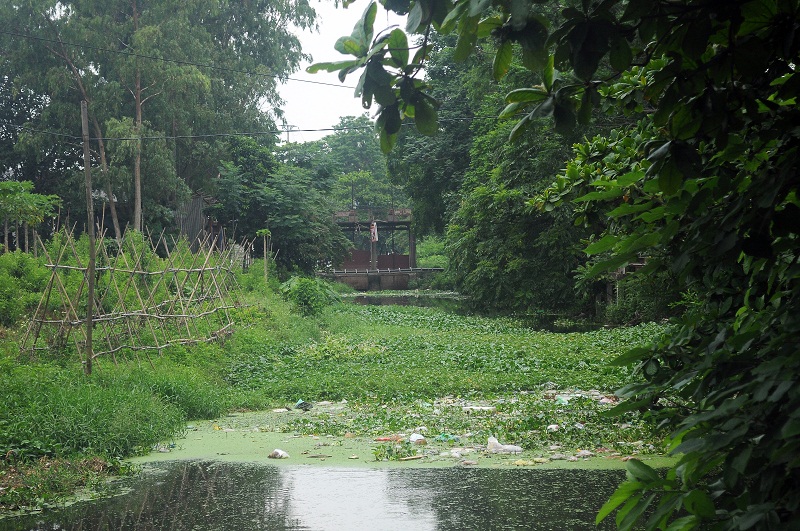 Ghi nhận của phóng viên tại đoạn mương từ Cầu Tuân đến Cầu Mới thuộc tổ 5, Phường Yên Nghĩa (quận Hà Đông, Hà Nội) hai bên bờ mương, cây cối mọc um tùm, dòng nước đen ngòm, trên mặt mương có nhiều bèo và rác thải sinh hoạt như: túi ni lông, chai nhựa, thùng xốp…