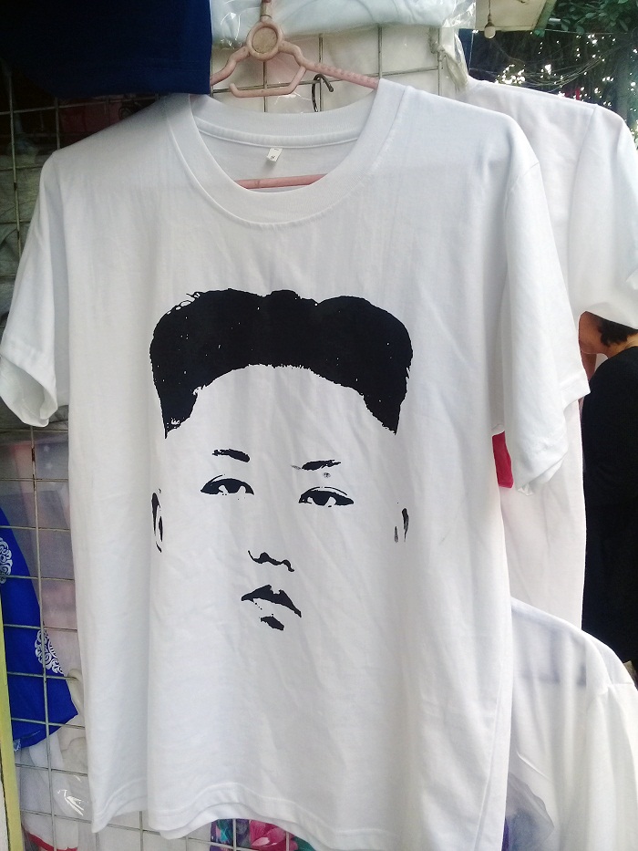 Hiện tại, những chiếc áo phông in hình 2 nhà lãnh đạo Mỹ và Triều Tiên đang trở thành mặt hàng “hot” nhất ở khu phố cổ Hà Nội. Những chiếc áo với hai loại màu chủ đạo là trắng và đen, thiết kế khá đơn giản nhưng lại làm nổi bật được đường nét hình vẽ chân dung của ông Trump và ông Kim.