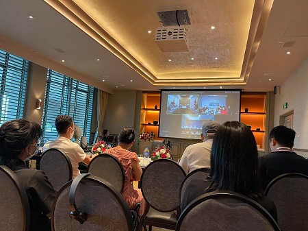 Hội thảo trực tuyến giữa 3 điểm cầu Seoul (Hàn Quốc), Hà Nội và TP Hồ Chí Minh (Việt Nam).