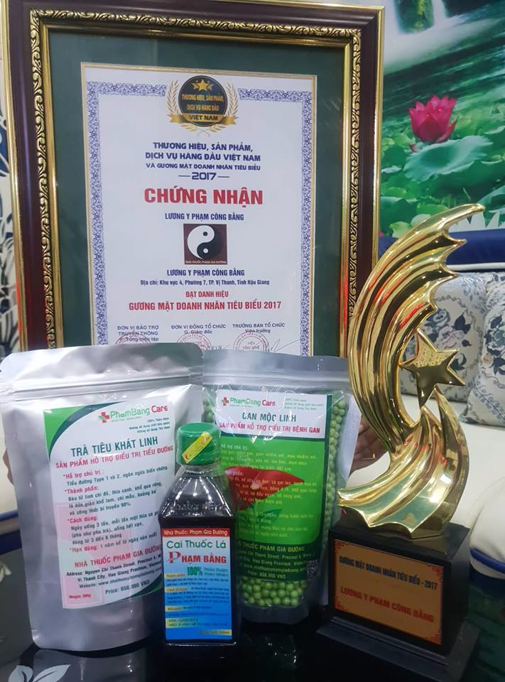 Lương y Phạm Công Bằng vinh dự được trao tặng bằng khen và kỷ niệm chương trong chương trình “ tôn vinh thương hiệu, sản phẩm, dịch vụ hàng đầu Việt Nam & gương mặt doanh nhân tiêu biểu