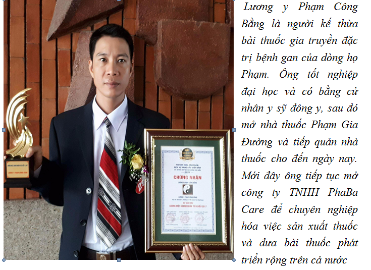 Khi nói đến bài thuốc Đông y điều trị hiệu quả các bệnh gan phải kể đến bài thuốc gia truyền Can Mộc Linh của đông y gia truyền Phạm Gia Đường. Bài thuốc đã được nhiều các y bác sĩ, nhà khoa học đánh giá cao về yếu tố kinh nghiệm và yếu tố khoa học trong điều trị các bệnh lý về gan. Hai yếu tố đó đã tạo nên đặc trưng của bài thuốc, mang lại hiệu quả toàn diện nhất cho các bệnh về gan. Bài thuốc này đã được kế thừa và phát huy bởi lương y Phạm Công Bằng.