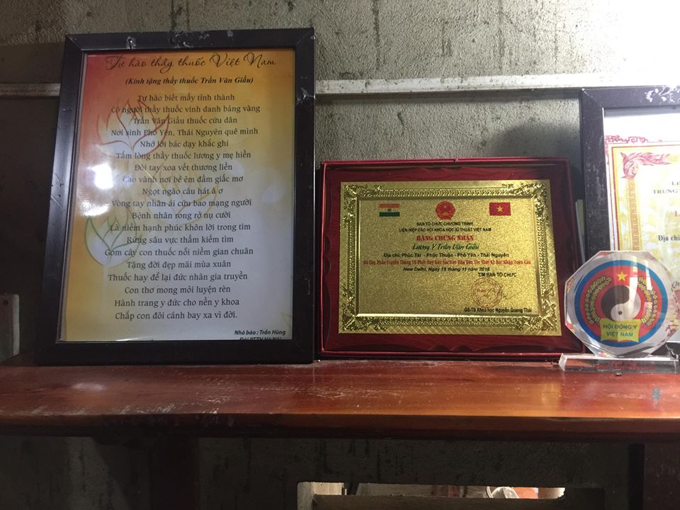Nhắc tới lương y Trần Văn Giầu, hầu hết người dân ở Phổ Yên đều biết danh tiếng của ông. Chúng tôi tới cửa hiệu cũng là nhà của Lương y Trần Văn Giầu khi ông đang say sưa nghiên cứu những bài thuốc cổ truyền của dân tộc.