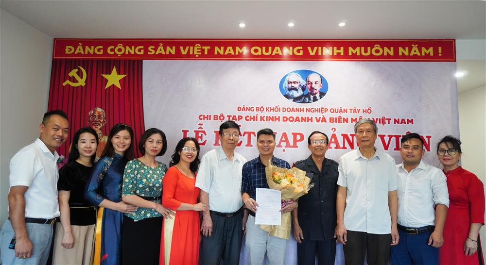 Tham dự buổi lễ có đồng chí Nguyễn Thị Chinh - UV BCH Đảng ủy Khối DN quận Tây Hồ, đồng chí Hoàng Minh Tuấn - Chủ tịch Hiệp hội thương nhân kinh doanh biên mậu Việt Nam, đồng chí Phạm Bá Dục - Bí thư chi bộ - Tổng biên tập Tạp chí Kinh doanh và Biên mậu Việt Nam, đồng chí Tạ Trung Thành - Phó Tổng biên tập Tạp chí cùng đông đủ các đồng chí đảng viên của Chi bộ và quần chúng ưu tú.