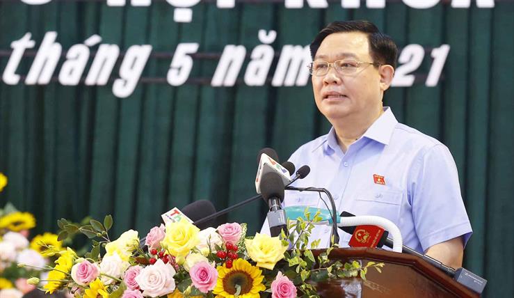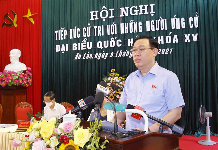 Tại cuộc tiếp xúc cử tri với người ứng cử đại biểu Quốc hội, Chủ tịch Quốc hội Vương Đình Huệ cam kết sẽ thường xuyên quan tâm, theo dõi tình hình phát triển kinh tế - xã hội của Thành phố Hải Phòng nói chung và các quận, huyện nơi mình được bầu nói riêng, cùng với Đoàn Đại biểu Quốc hội Thành phố Hải Phòng luôn giữ mối quan hệ chặt chẽ, phối hợp với các cấp ủy Đảng, Chính quyền, MTTQ Việt Nam các cấp của Thành phố; đề xuất, hiến kế, kiến nghị những giải pháp cụ thể để thực hiện thắng lợi Nghị quyết số 45 của Bộ Chính trị về xây dựng và phát triển Thành phố Hải phòng đến năm 2030, tầm nhìn đến năm 2045 và Nghị quyết Đại hội Đảng bộ Thành phố; tạo mọi điều kiện thuận lợi cho kinh doanh, cho phát triển doanh nghiệp theo phương châm “dân biết, dân bàn, dân làm, dân kiểm tra, dân thụ hưởng”.