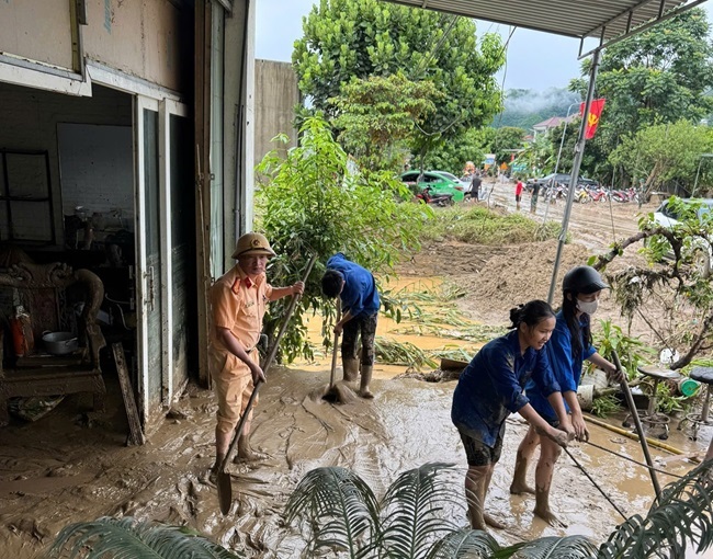 Song song với hỗ trợ về vật chất, công an tỉnh đã tăng cường lực lượng, phương tiện về các địa bàn trọng điểm, tham gia ứng cứu, hỗ trợ sơ tán dân cư, dọn dẹp môi trường, khắc phục hậu quả thiên tai. 03 tổ công tác đặc biệt đã được triển khai đến các xã Tương Dương, Tam Quang, Tam Thái ngay trong ngày đầu nước rút. Đặc biệt, khu vực Bệnh viện Đa khoa Tương Dương – nơi tiếp nhận hàng nghìn bệnh nhân – đã được khẩn trương nạo vét bùn đất, dọn dẹp để sớm trở lại hoạt động.