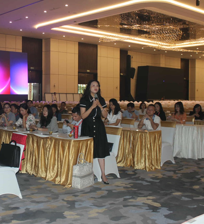 Đại diện tiểu ban an ninh chia sẻ công tác an ninh của Trung tâm Triển lãm.