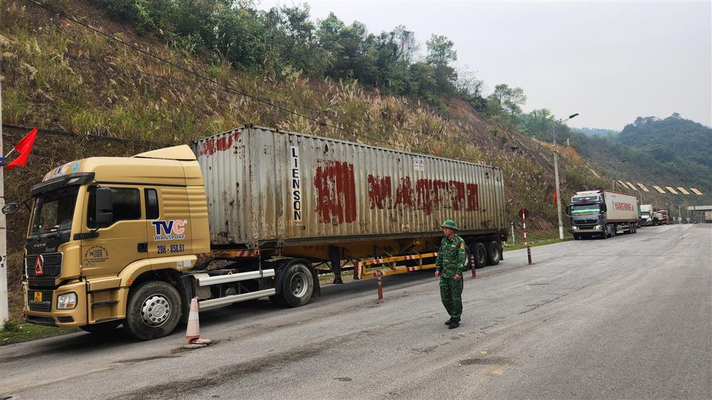 Cán bộ Biên phòng kiểm tra các container nhập khẩu từ Trung Quốc.