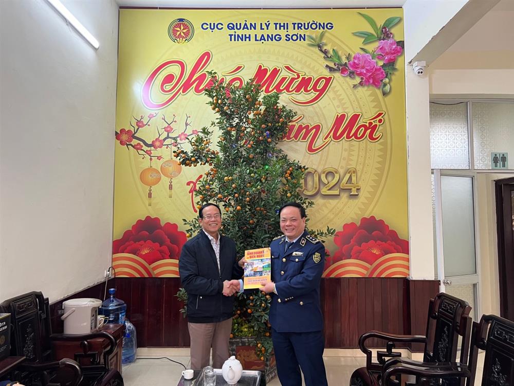 Ông Phạm Bá Dục -Tổng Biên tập Tạp chí Kinh doanh và Biên mậu Việt Nam tặng Tạp chí cho Cục QLTT tỉnh Lạng Sơn nhân chuyến thăm.