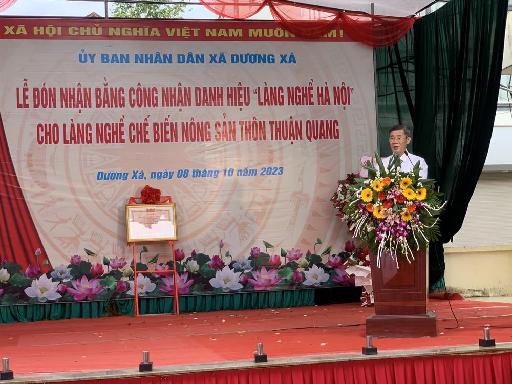 Với những thành tựu đã đạt được, ngày 11-8-2023, UBND thành phố Hà Nội đã ký ban hành Quyết định số 4038/QĐ-UBND, công nhận danh hiệu "Làng nghề Hà Nội" cho Làng nghề chế biến nông sản thôn Thuận Quang, xã Dương Xá, huyện Gia Lâm.