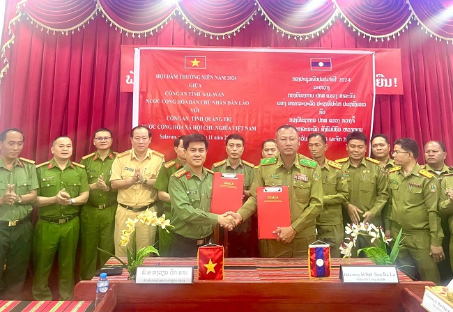 Chiều ngày 28, 29/11/2024, đã diễn ra Hội đàm giữa Công an tỉnh Salavan; Công an tỉnh Chămpa Săc (Lào) và Công an tỉnh Quảng Trị (Việt Nam) nhằm đánh giá kết quả hợp tác trong công tác bảo đảm an ninh, trật tự giai đoạn 2023-2024 và ký kết Biên bản ghi nhớ hợp tác giai đoạn 2024-2025. Tham dự hội nghị về phía Công an tỉnh Quảng Trị có Đại tá Nguyễn Đức Hải, Giám đốc Công an tỉnh cùng các thành viên; về phía Công an tỉnh Salavan có đồng chí Thiếu tướng Si Sot Son Đa La, Giám đốc Công an tỉnh; về phía Công an tỉnh Chămpasăc có đồng chí Thiếu tướng Xúc Pha Chăn Si La Phết, Giám đốc Công an tỉnh cùng các thành viên.