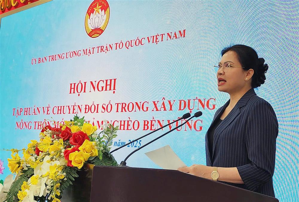 Phát biểu tại hội nghị, bà Hà Thị Nga – Ủy viên Trung ương Đảng, Phó Chủ tịch UBTƯ Mặt trận Tổ quốc Việt Nam nhấn mạnh: “Chương trình mục tiêu quốc gia về xây dựng nông thôn mới và giảm nghèo bền vững luôn được Đảng, Nhà nước quan tâm, coi đây là nhiệm vụ chiến lược gắn với phát triển bền vững đất nước, đảm bảo an sinh xã hội và nâng cao đời sống nhân dân. Công tác truyền thông, đặc biệt là ứng dụng chuyển đổi số, có vai trò then chốt trong việc lan tỏa chính sách và huy động sự tham gia của toàn xã hội”.