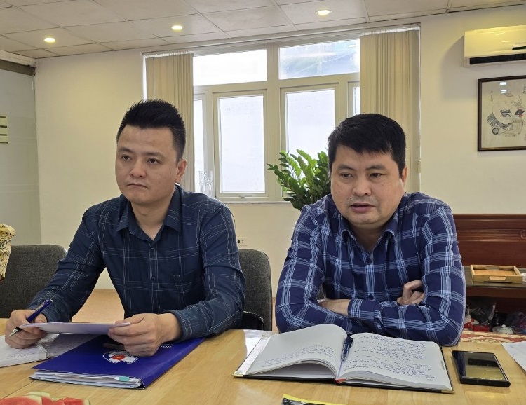 Ông Nguyễn Mạnh Tuấn - Phó Trưởng BKT - Hội Nhà báo Việt Nam (Bên phải) phát biểu ý kiến tại buổi làm việc