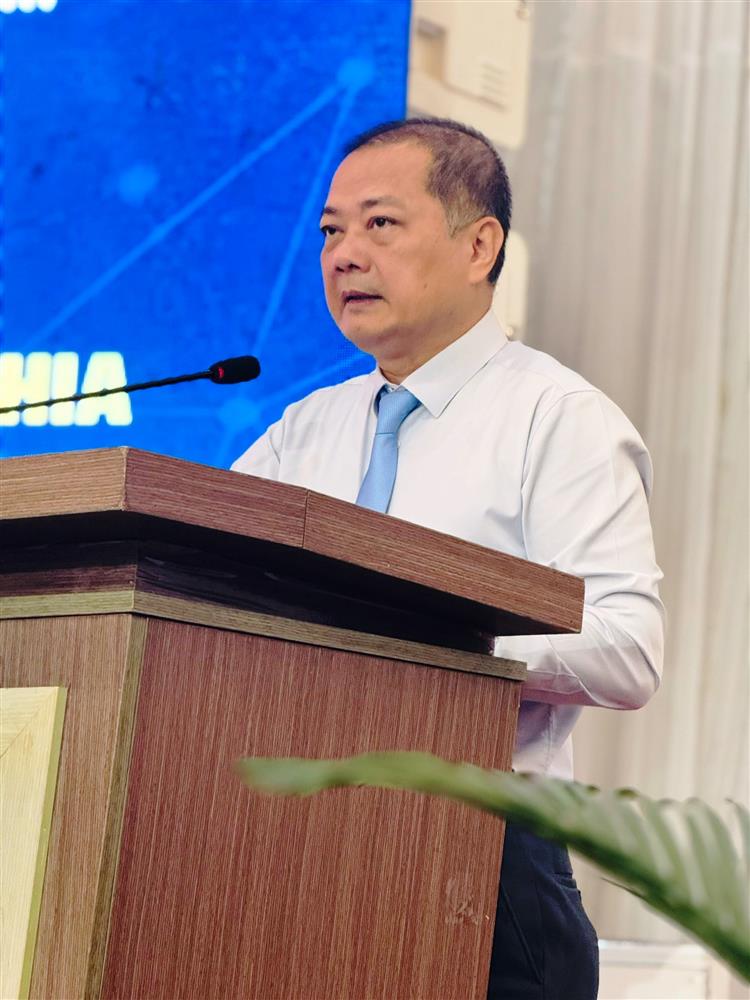 ông Nguyễn Anh Sơn, Cục Trưởng Cục xuất nhập khẩu (Bộ Công thương) tham luận tại hội nghị.