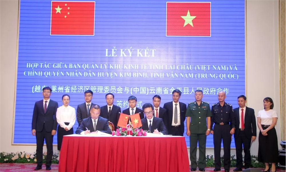Lãnh đạo hai Bên đã Ký kết Bản ghi nhớ hợp tác giữa Ban Quản lý Khu kinh tế tỉnh Lai Châu (Việt Nam) với Chính quyền nhân dân huyện Kim Bình, tỉnh Vân Nam (Trung Quốc) Ảnh: Báo Công thương