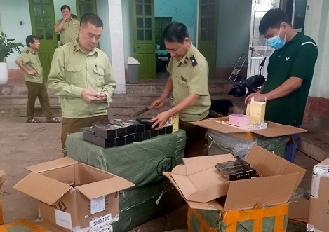 Qua kiểm tra thực tế, trên xe ô tô có chở 22 thùng carton, bên trong có chứa 6.650 sản phẩm thuốc lá điện tử các loại.