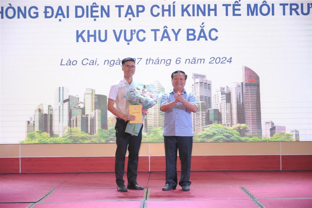 Tại buổi lễ, PGS.TS Trương Mạnh Tiến đã trao Quyết định thành lập Văn phòng đại diện Tạp chí Kinh tế Môi trường khu vực Tây Bắc tại Lào Cai và Quyết định bổ nhiệm Trưởng Văn phòng Đại diện cho Ths. Nhà báo Hà Đức Mậu, quyết định bổ nhiệm Phó Trưởng Văn phòng Đại diện cho Nhà báo Lê Văn Mạnh.