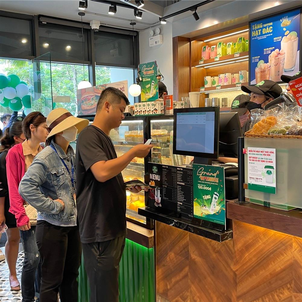 Khách hàng giao dịch bằng thẻ tại các cửa hàng Phúc Long