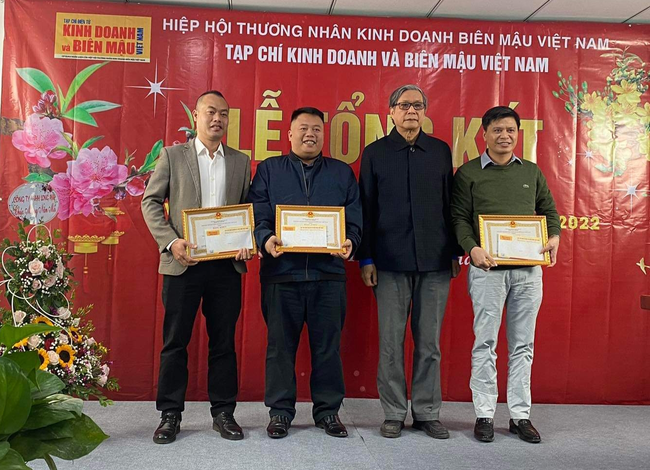 Chủ tịch Hiệp hội thương nhân Kinh doanh Biên mậu Việt Nam - Ông Hoàng Minh Tuấn trao giấy khen cho 3 cá nhân có thành tích xuất sắc trong công tác xây dựng và phát triển Tạp chí năm 2021.