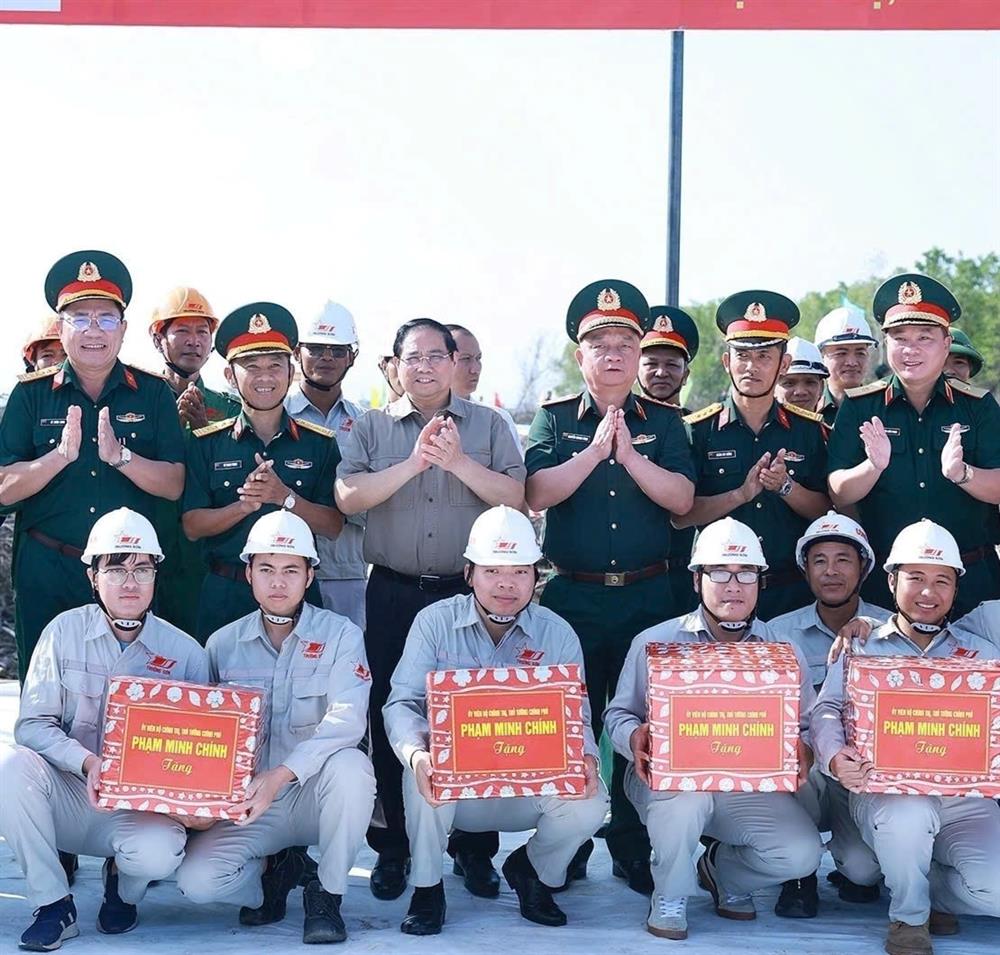 Cũng trong chuyến công tác lần này, Thủ tướng Chính phủ Phạm Minh Chính đã thăm, tặng quà lực lượng thi công và người dân tại điểm đầu xây dựng tuyến giao thông ra đảo Hòn Khoai, Thủ tướng hoan nghênh, đánh giá cao, cảm ơn bà con đã nhường đất cho dự án; các lực lượng thi công đã nỗ lực bám công trường, khắc phục khó khăn về địa hình, địa chất, tổ chức thi công 3 ca, 4 kíp, vượt nắng, thắng mưa để đẩy nhanh tiến độ dự án, tất cả vì lợi ích quốc gia dân tộc, lợi ích của nhân dân. Qua đánh giá các dự án có địa hình, địa chất, điều kiện thi công khó khăn, phức tạp, Thủ tướng Chính phủ yêu cầu huy động lực lượng, thiết bị; áp dụng các biện pháp thi công và công nghệ tiên tiến; triển khai đồng loạt các dự án cả trên biển và đất liền. Cùng với đẩy nhanh tiến độ các dự án, phải đảm bảo chất lượng, kỹ thuật, an toàn lao động; không chia nhỏ dự án; không để xảy ra lãng phí, tiêu cực, tham nhũng.