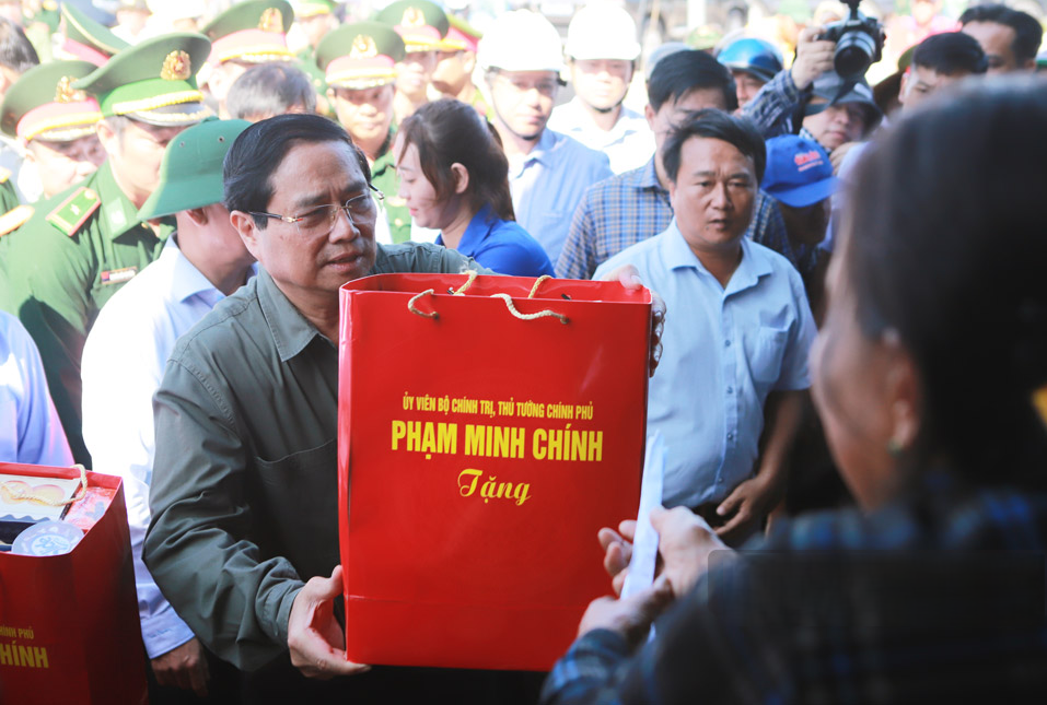 Chia sẻ sâu sắc trước mất mát của người dân, Thủ tướng Phạm Minh Chính chỉ đạo các cơ quan liên quan chung tay giúp dân xây lại căn nhà đã sập, lợp lại mái ngói bị bão cuốn bay, để giúp dân vùng tâm bão ổn định cuộc sống trước Tết Nguyên đán. Thủ tướng khẳng định: “Ai mất nhà sẽ cho xây nhà, nhà nước sẽ hỗ trợ người dân. Ai có nhà hư hỏng thì phải kê khai để hỗ trợ. Bà con phải di dời đến khu tái định cư, không ở lại vùng nguy hiểm nữa để ổn định cuộc sống”.
