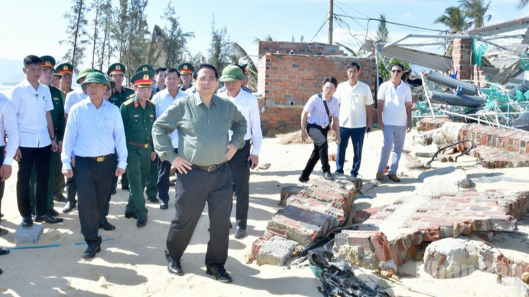 Thủ tướng Phạm Minh Chính thị sát tình hình thiệt hại do bão số 13 làm sập nhà cửa, công trình của nhân dân tại Gia Lai.
