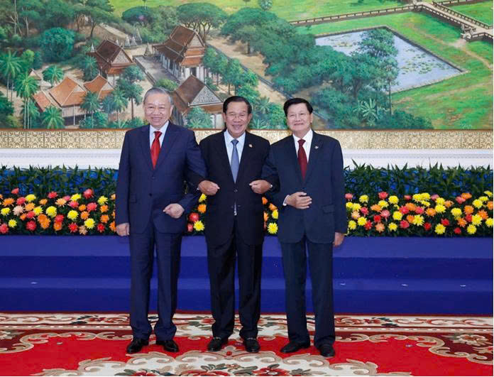 Bên cạnh đó, Chủ tịch CPP Hun Sen và Tổng Bí thư Đảng Nhân dân Cách mạng Lào Thongloun Sisoulith cảm ơn Tổng Bí thư Tô Lâm đã thông báo về thành tựu trong phát triển kinh tế - xã hội; đặc biệt là thành công của Đại hội XIV; đánh giá cao đường lối đổi mới toàn diện, tư duy chiến lược và năng lực lãnh đạo của Đảng Cộng sản Việt Nam trong giai đoạn phát triển mới; tin tưởng dưới sự lãnh đạo sáng suốt của Đảng Cộng sản Việt Nam đứng đầu là Tổng Bí thư Tô Lâm, Việt Nam sẽ đạt được nhiều thắng lợi trong việc thực hiện Nghị quyết Đại hội XIV, tiến tới đạt mục tiêu trở thành nước đang phát triển có công nghiệp hiện đại, thu nhập trung bình cao vào năm 2030 và trở thành nước xã hội chủ nghĩa phát triển, thu nhập cao vào năm 2045.
