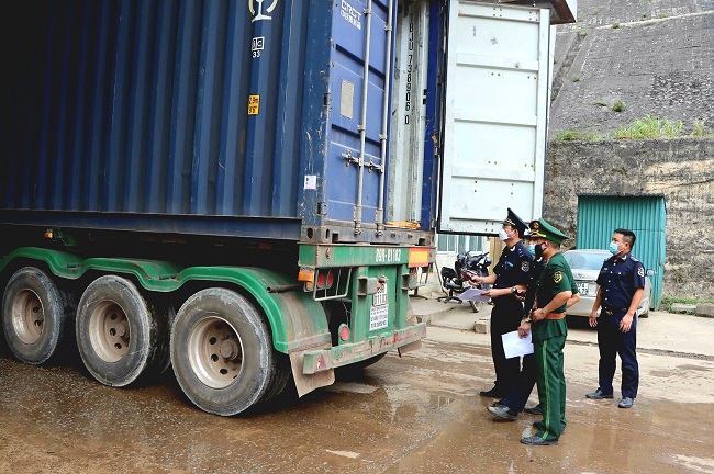 Chi cục hải quan Cầu treo và trạm Biên phòng Cầu treo(Hà Tĩnh) phối hợp kiểm tra hàng hóa trước khi thông quan