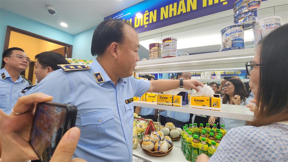 Tổng Cục trưởng Tổng Cục QLTT Trần Hữu Linh hướng dẫn cách nhận biết hàng giả hàng thật tại Phòng trưng bày