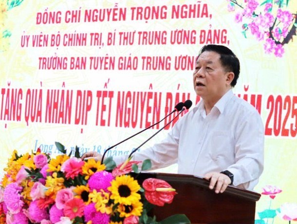 Ngày 18/01, Đoàn công tác Trung ương do ông Nguyễn Trọng Nghĩa, Ủy viên Bộ Chính trị, Bí thư Trung ương Đảng, Trưởng ban Tuyên giáo Trung ương làm Trưởng đoàn đã đến thăm và tặng quà các gia đình chính sách, gia đình có hoàn cảnh khó khăn, công nhân, người lao động tại 2 tỉnh Long An, tỉnh Tiền Giang nhân dịp Tết Nguyên đán Ất Tỵ năm 2025.