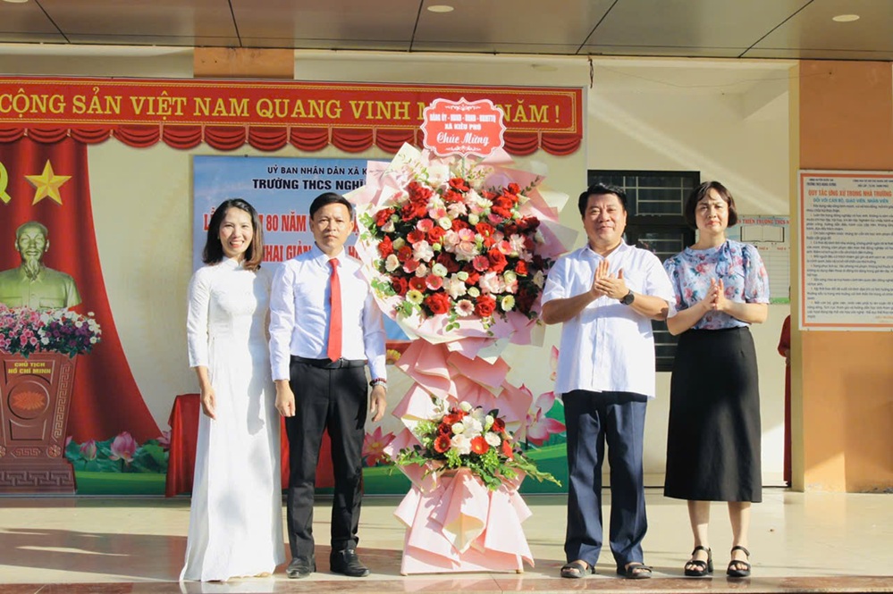 Đại diện UBND xã Kiều Phú đến dự và tặng hoa trường THCS Nghĩa Hương (ảnh: TT VH- TT - TT Kiều Phú)