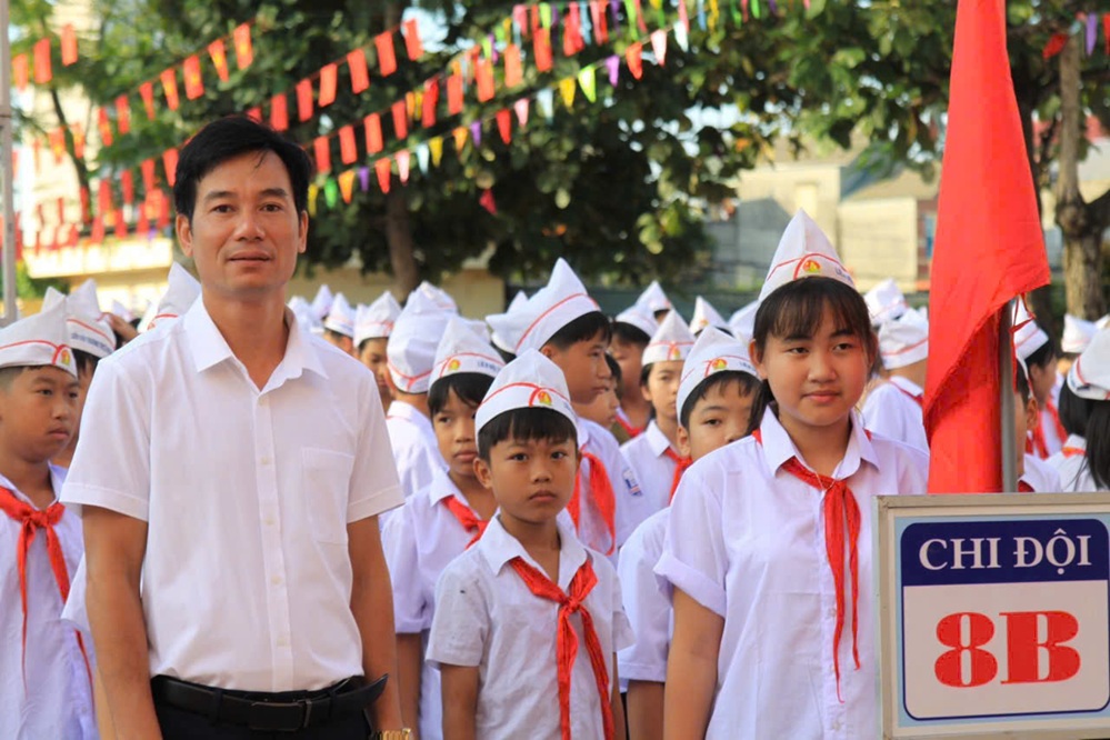 Thầy giáo và tập thể lớp 8B trường THCS Nghĩa Hương.