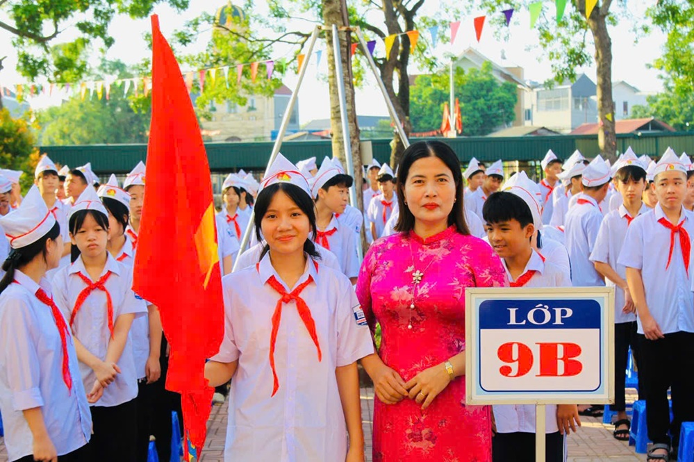 Giáo viên và tập thể học sinh lớp 9B trường THCS Nghĩa Hương.