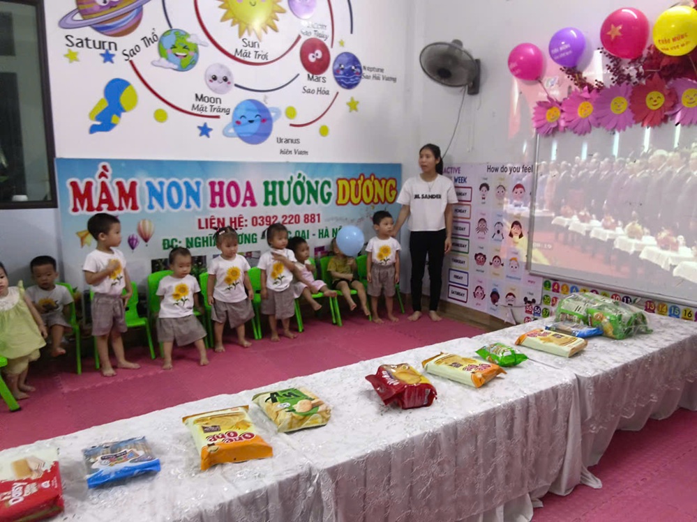 Giáo viên và học sinh trường mầm non tư thục Hoa Hướng Dương.
