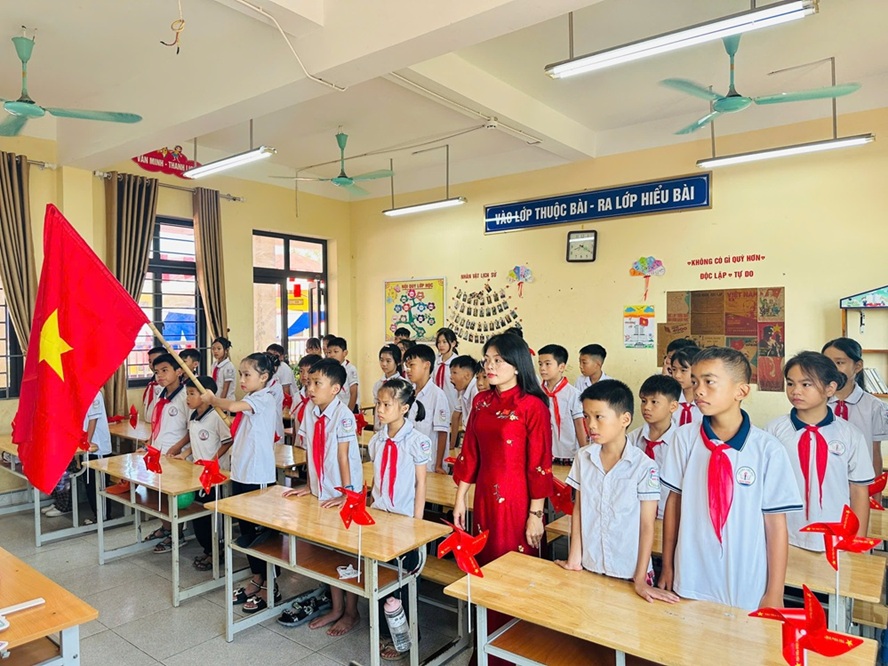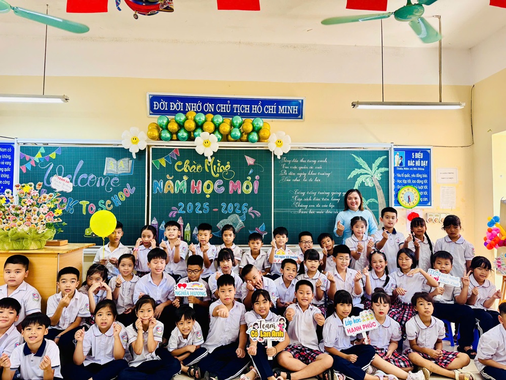 Giáo viên và tập thể lớp 3A trường tiểu học Nghĩa Hương.