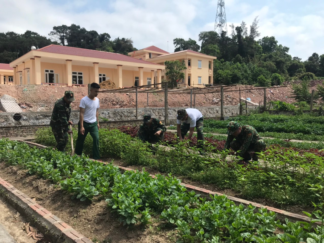 Cán bộ, chiến sĩ Đồn Biên phòng Cửa khẩu cảng Vạn Gia tăng gia sản xuất.
