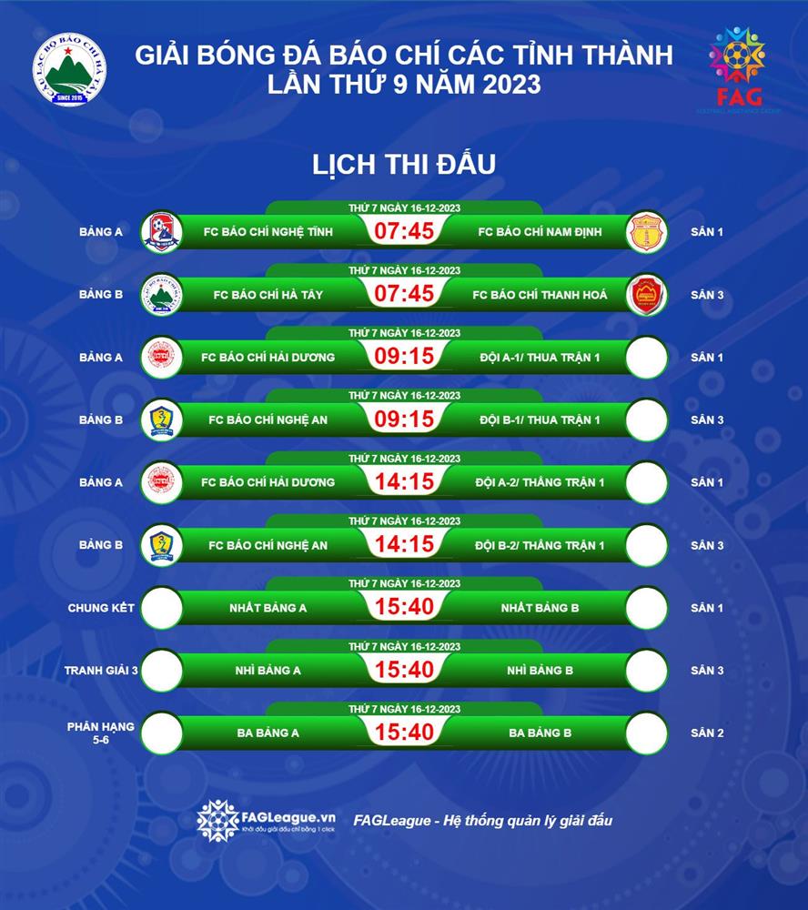 Giải bóng đá báo chí các tỉnh, thành lần thứ IX sẽ chính thức khai mạc sáng ngày 16/12/2023.