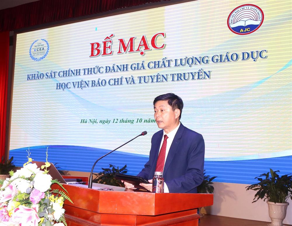 Buổi lễ bế mạc đợt khảo sát chính thức cơ sở giáo dục tại Học viện Báo chí và Tuyên truyền có sự tham dự của đoàn chuyên gia đánh giá ngoài từ Trung tâm Kiểm định chất lượng giáo dục – Trường Đại học Vinh, Ban Lãnh đạo Học viện Báo chí và Tuyên truyền, Hội đồng Tự đánh giá cùng đại diện các đơn vị, tổ chức, đoàn thể; đại diện cán bộ, giảng viên, sinh viên và học viên của Học viện. Tham dự sự kiện còn có các cơ quan thông tấn, báo chí đến để đưa tin.