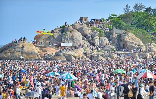 Du khách đến với biển Sầm Sơn dịp nghỉ lễ 30/4 và 1/5