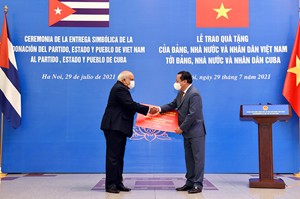 Ngay sau buổi tiếp xã giao Đại sứ Cuba, thay mặt Đảng, Nhà nước và nhân dân Việt Nam, Thủ tướng Phạm Minh Chính đã chủ trì lễ trao tượng trưng món quà 10.000 tấn gạo tặng Đảng, Nhà nước và nhân dân Cuba. Nhân dịp này, lãnh đạo Thành ủy Hà Nội cũng thay mặt Đảng bộ, chính quyền và nhân dân Thủ đô Hà Nội trao tượng trưng 2.000 tấn gạo tặng nhân dân Thủ đô La Habana của Cuba./.