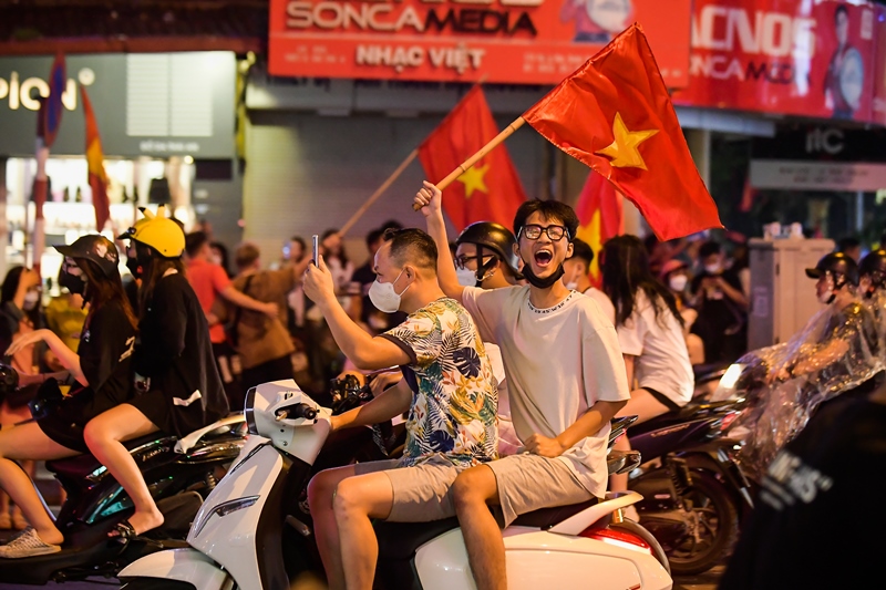 Hàng vạn người hâm mộ đổ ra đường ăn mừng chiến thắng U23 Việt Nam.