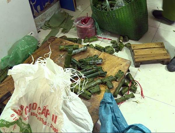 Cơ quan chức năng vừa kiểm tra và phát hiện 114kg giò lá do một cơ sở sản xuất có sử dụng hàn the tại Hà Nội.