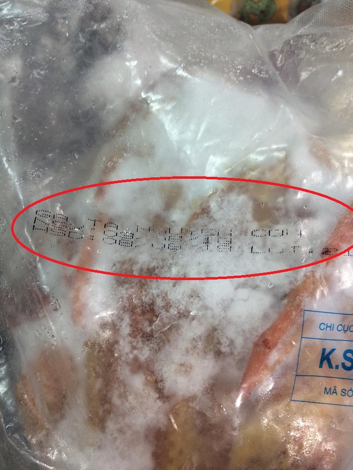 Nhiều khay đựng thực phẩm hải sản như: tôm, mực, cá đều bị thối đen, chảy nước nhưng vẫn được bán với giá khá cao, đặc biệt những khay đựng thực phẩm này gần như không có tem mác mà chỉ thông tin tên sản phẩm và giá, không hề có xuất xứ, ngày sản xuất, hạn sử dụng.