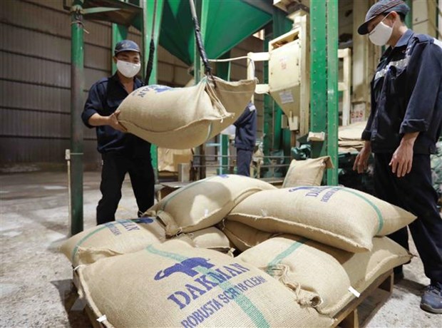 Đóng bao sản phẩm càphê xuất khẩu tại nhà máy của Công ty TNHH ĐăkMan (Đắk Lắk). (Ảnh: TTXVN)